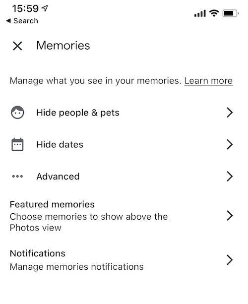 To give people control in Memories, we used existing controls and added new ones. Shortly after we launched Rediscover this Day, Google Photos gave people the ability to hide specific faces in their library. You can hide photos of an ex-partner or an obnoxious in-law, and their face won’t show up in reminiscing features ever again (and you can of course bring those memories back if you change your mind). We felt strongly that the ability to hide dates was also important, and research supported this hypothesis. So we built controls to hide dates and date ranges directly from the memory player. And you can also remove memories all together. The result is key controls for people to adjust and personalize their reminiscing.